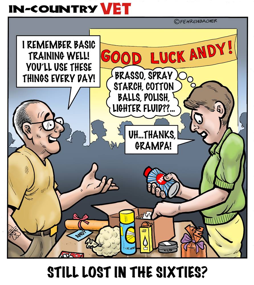 Phil enlisted in the Army in 1965 where he served for years in Vietnam. He became a graphic designer and has worked for the state of Oregon for 26 years. He retired in 2003 and started the Cartoon "In-Country". The cartoons reflect his experiences during his tour of duty in South Vietnam.