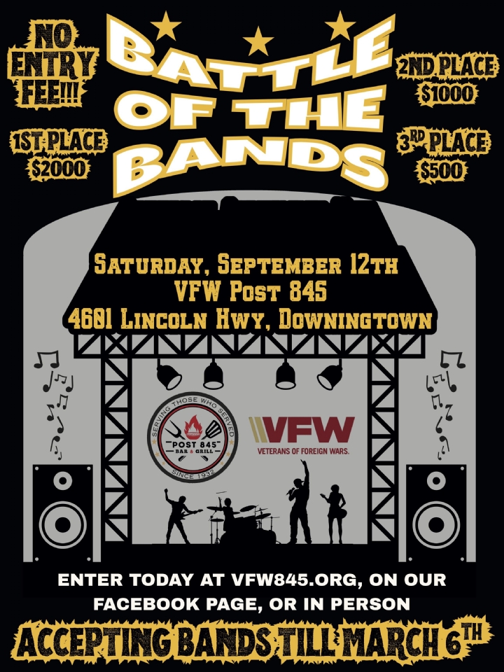 An amazing contest between area bands will take place outdoors at the post with the best band winning the title of "Champion” and $2,000 prize money. Registration must take place before March 6, 2026.